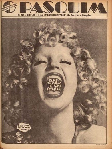 De modo que não me interessa aqui investigar datas e geografias, mas sim um certo “espírito Elke Maravilha de ser”. Recorri, então, a ela: a nossa amada Hemeroteca Digital da Biblioteca Nacional. Revirei acervos e agora trago de bandeja o que achei de melhor.